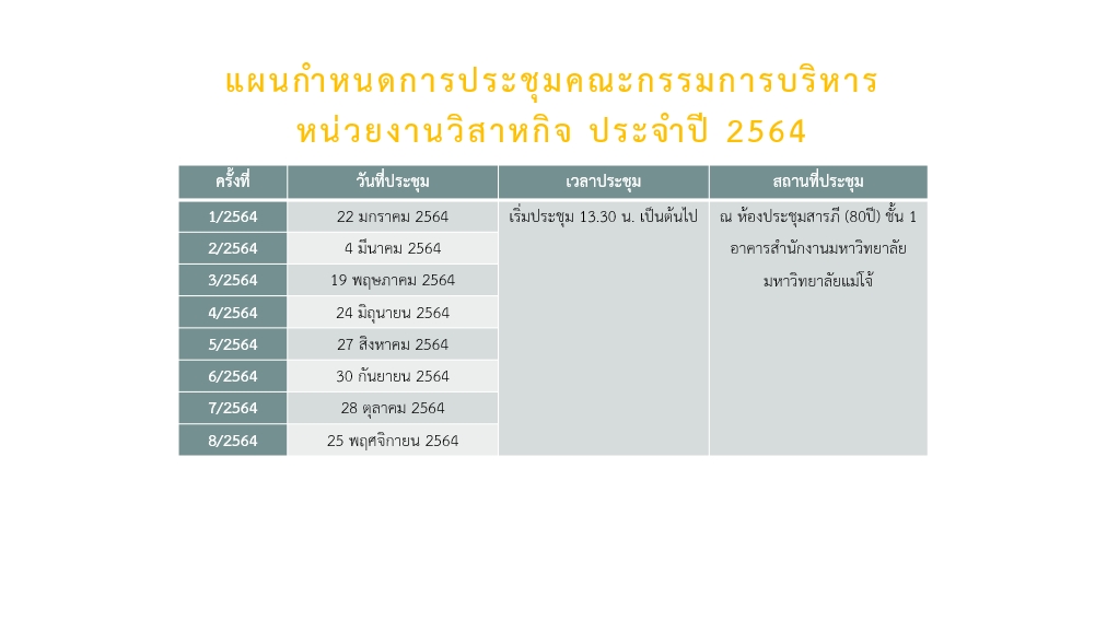 ปฏิทินการประชุมคณะกรรมการบริหารหน่วยงานวิสาหกิจ ประจำปี 2564